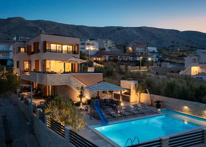 Villa Emma On Island Pag For 14 Persons With Sea View, Wellness & Pool Heating